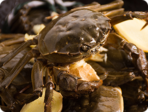 每逢炎夏,青母蟹會(huì)在產(chǎn)卵時(shí)棲身于淺灘河畔,在陽(yáng)光的照射下,體內(nèi)的蟹膏分解成金黃色的油脂,然后滲透到體內(nèi)的各個(gè)部分,使得整只蟹晶瑩剔透、充滿(mǎn)黃油,因此被稱(chēng)為黃油蟹。